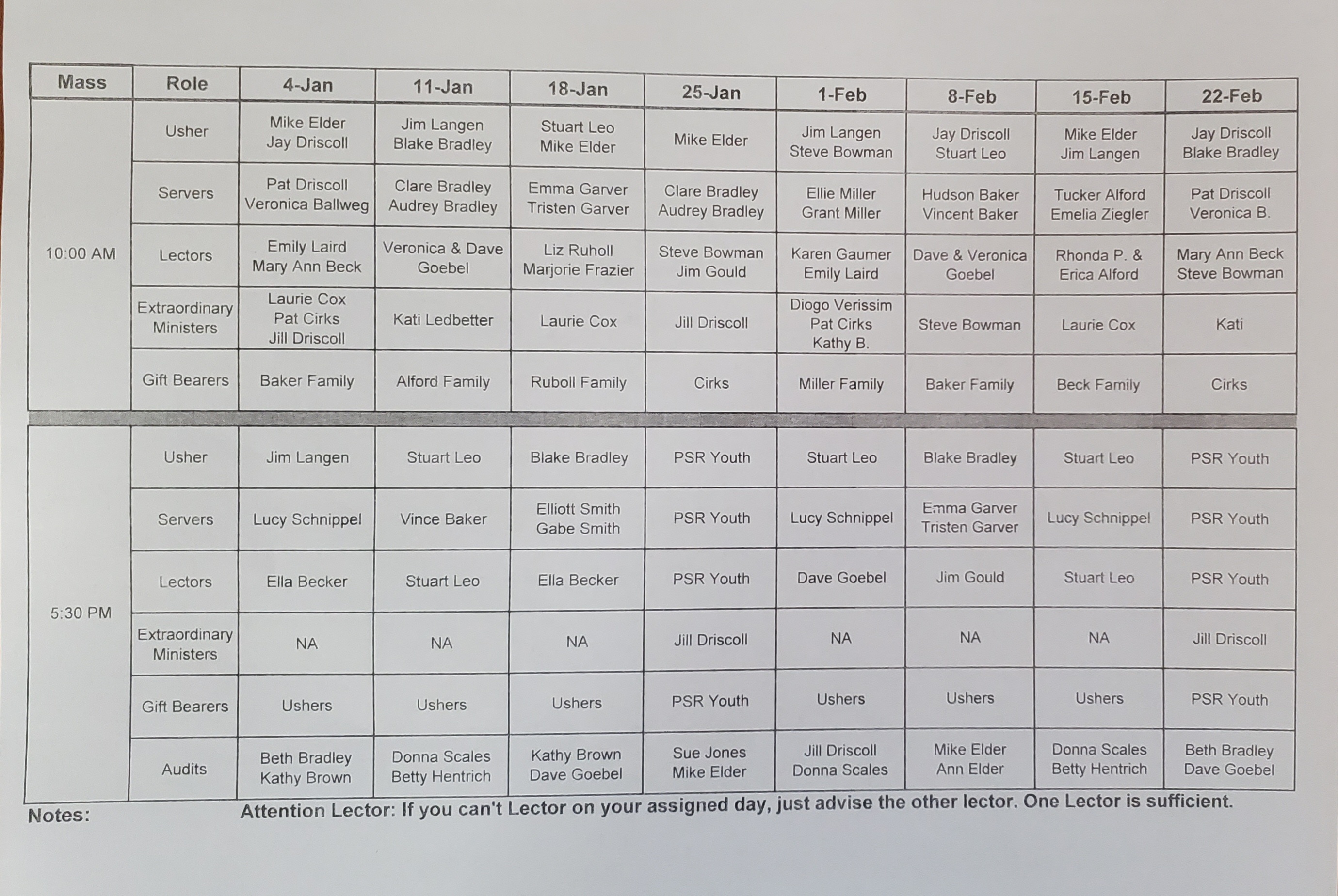 If you would like to be on the ministry schedule or have any changes to your contact information,
